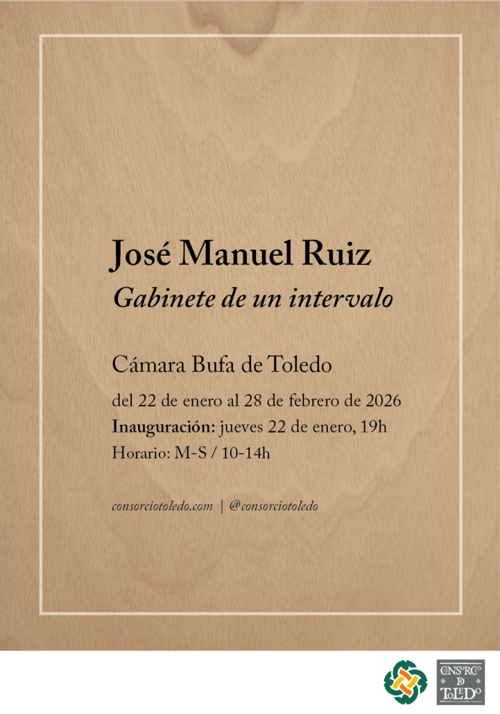 EXPOSICIONES HORARIO MARTES A SÁBADOS: 10:00 - 14:00 CÁMARA BUFA ENTRADA LIBRE GABINETE DE UN INTERVALO DEL 22 DE ENERO AL 28 DE FEBRERO DE 2026 JOSÉ MANUEL RUIZ RETRATOS RIMADOS DEL 6 DE MARZO AL 30 DE MAYO DE 2026 LALO GONZÁLEZ CABEZAS PRIMERAS LUCES DEL 5 DE JUNIO AL 26 DE SEPTIEMBRE DE 2026 JAVIER LONGOBARDO SAVBIA DEL 2 DE OCTUBRE AL 31 DE DICIEMBRE DE 2026 ESTEFANÍA SANZ LOS CONCIERTOS DE LA CÁMARA BUFA ARIEL ACEVEDO & CARLOS ÁVILA 28 DE MARZO DE 2026 19:00 HORAS JAZZY TRÍO 25 DE ABRIL DE 2026 19:00 HORAS COPEIRO Y DE LA LLAVE 23 DE MAYO DE 2026 19:00 HORAS JUAN ALONSO & BETABAND 19 DE SEPTIEMBRE DE 2026 19:00 HORAS LATINPIA 10 DE OCTUBRE DE 2026 19:00 HORAS PACHASCO TRÍO 21 DE NOVIEMBRE DE 2026 19:00 HORAS EL SENTIMIENTO TRÁGICO EN LA OBRA DE LORCA CICLO 11 DE ABRIL DE 2026 19:00 HORAS ASOCIACIÓN APOLO TEATRO LA CÁMARA DE LOS CUENTOS INVISIBLES EN LA 9 DE MAYO DE 2026 19:00 HORAS CÍA EMILIO SAMINO CÁMARA EL TESORILLO 6 DE JUNIO DE 2026 19:00 HORAS COMPAÑÍA DE TEATRO ATENEA EN EL INTERIOR DEL COFRE 5 DE SEPTIEMBRE DE 2026 19:00 HORAS ASOCIACIÓN APOLO DARK SHELLEY 24 DE OCTUBRE DE 2026 19:00 HORAS ASOCIACIÓN APOLO DESMEMORIADOS 7 DE NOVIEMBRE DE 2026 19:00 HORAS GRUPO DE TEATRO CAOS CNSORG E 25 CNS°RG° TOLEDO TOLD www.consorciotoledo.com Tfno: 925 25 30 80